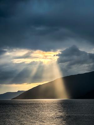 Stairway to Heaven // On our final evening in Vik, Norway, the sky opened. Rays of light poured through the clouds like a stairway descending from beyond — quiet, golden, divine. We sat by the water in silence, unable to explain what we felt… only that it meant something. Some moments don’t need words — they speak through wonder.